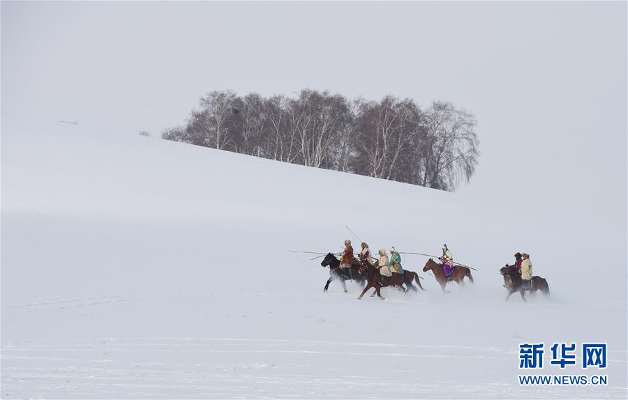 当日,第三届乌兰布统(坝上)草原马文化摄影节在内蒙古克什克腾旗乌兰布统草原开幕,骑马拾哈达、骑马表演、套马表演等具有民族风情的活动吸引众多游客和摄影爱好者前来观赏、拍摄。该摄影节是克什克腾第十三届冬季旅游节活动之一,将持续至1月8日。(李志鹏摄)