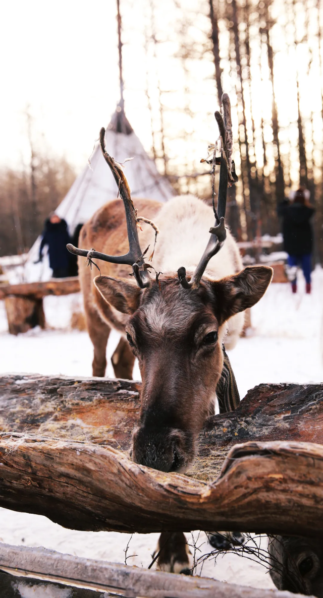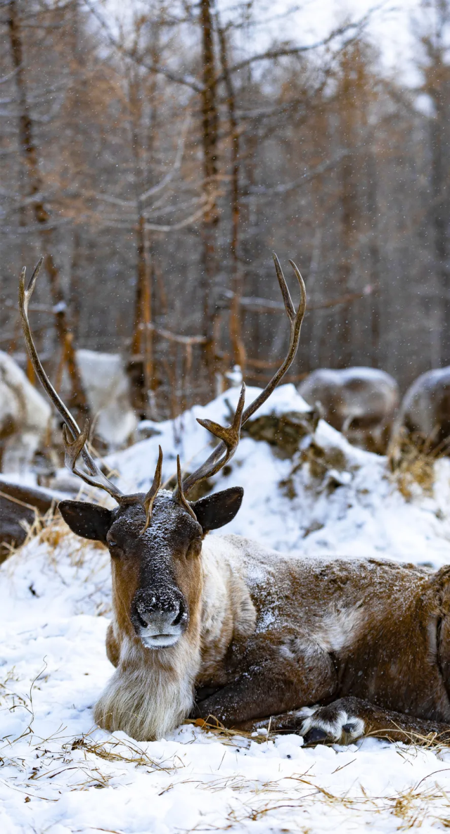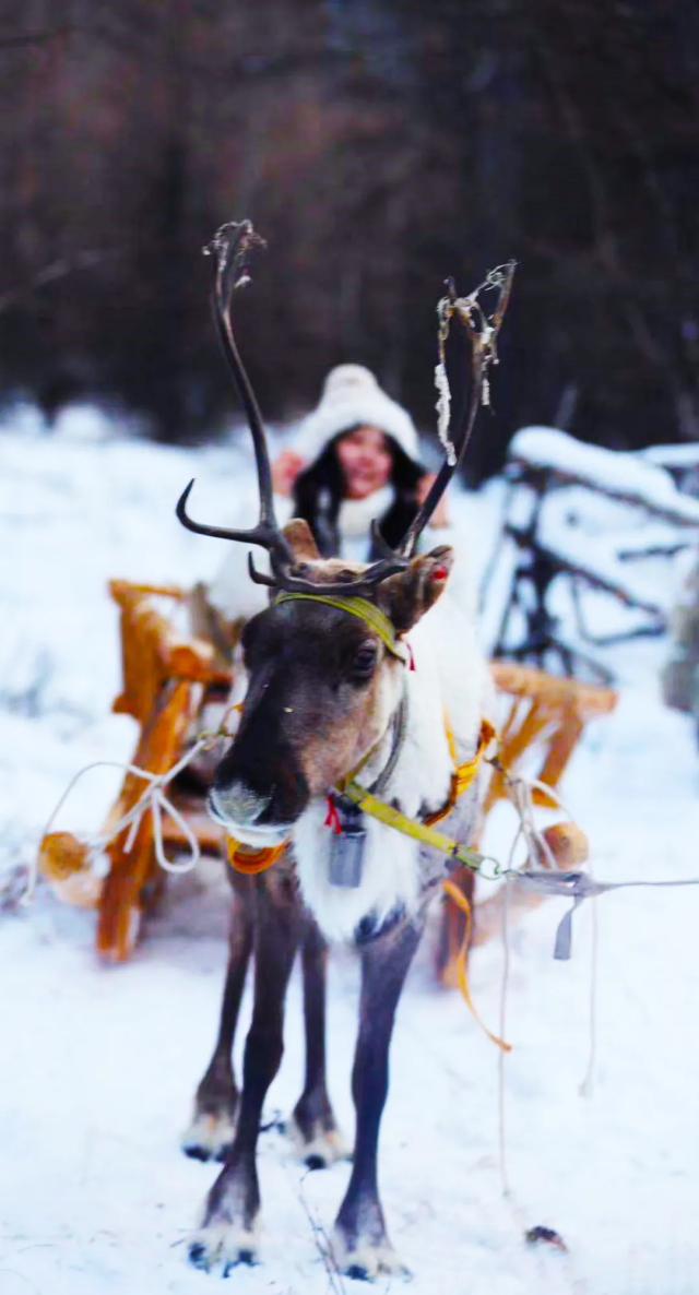 走进敖鲁古雅鹿部落景区,观敖鲁古雅驯鹿拉雪橇比赛,体验中国冷极的极致之美。
