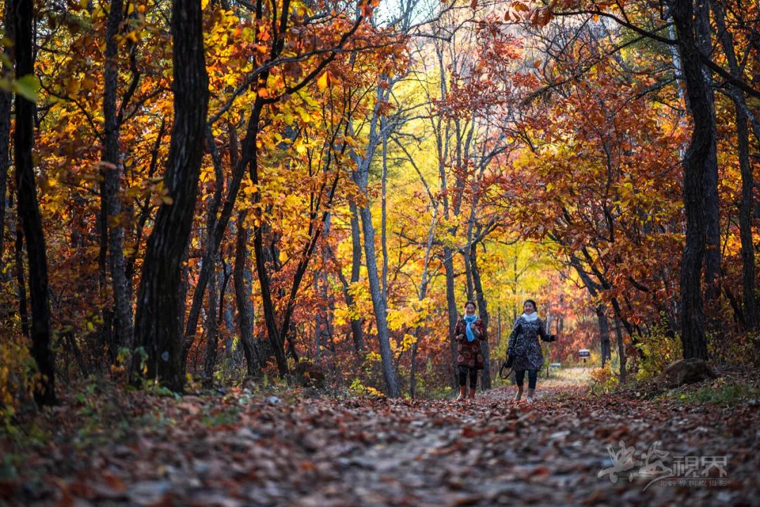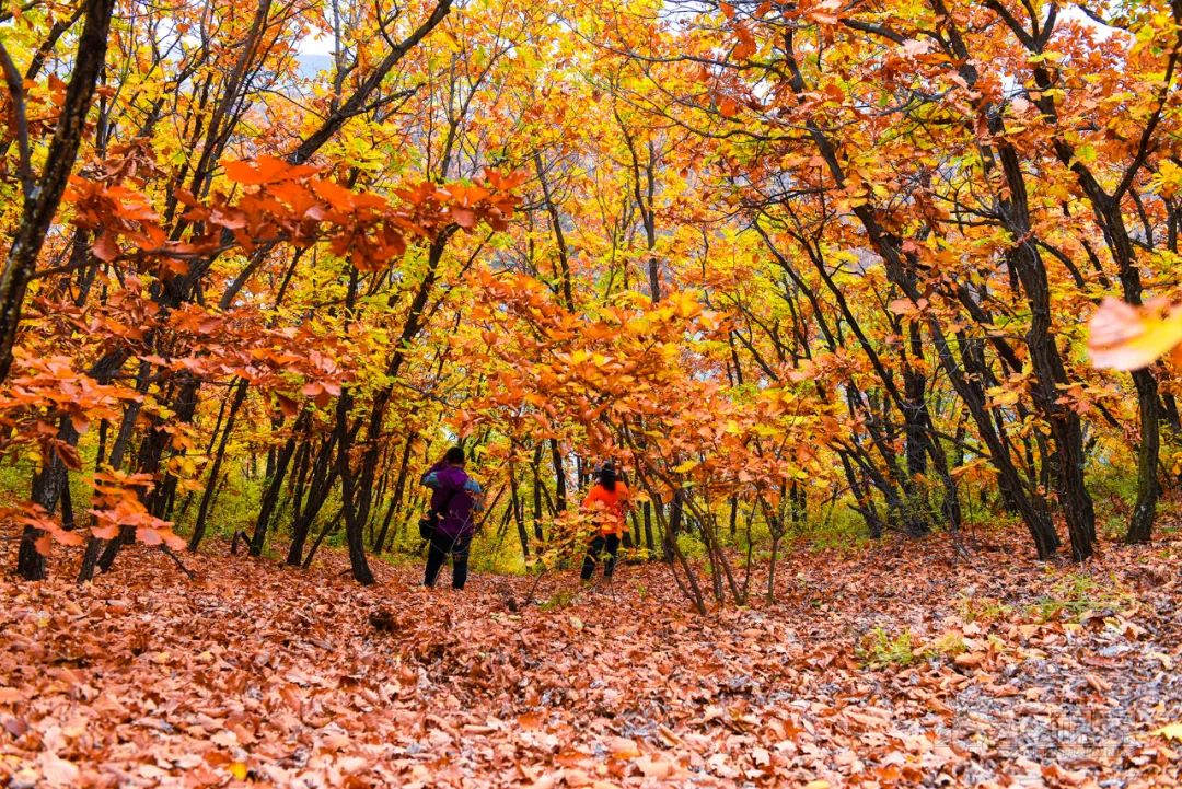 走在茂密的柞树林间,厚厚的松软落叶没过脚踝,沙沙作响,周围一片金黄,令人流连忘返。