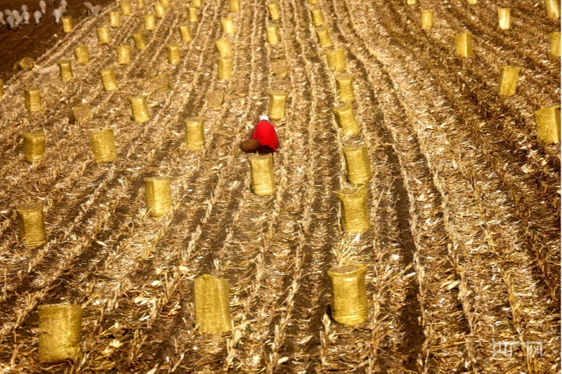 田间秸秆排列整齐(央广网发 蒋希武摄)