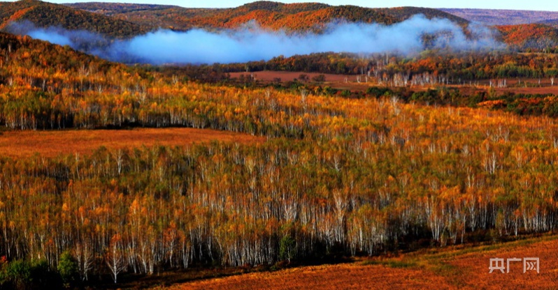五彩斑斓的山林薄雾缭绕、金色的田野牧歌悠扬。金秋十月,在内蒙古呼伦贝尔市莫力达瓦达斡尔族自治旗,秋天的画卷在大地上铺展,入眼都是醉人的景色。 (王秋蕾)