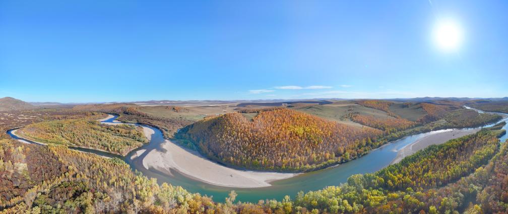 9月21日拍摄的内蒙古呼伦贝尔额尔古纳湿地秋景(无人机照片)。