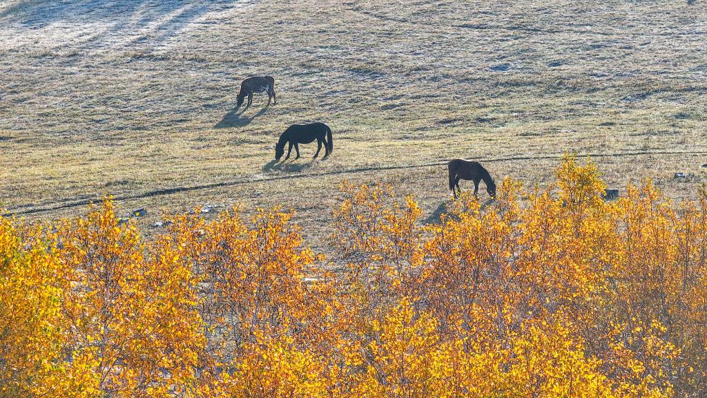 9月22日在河北省承德市围场满族蒙古族自治县坝上草原拍摄的秋景(无人机照片)。